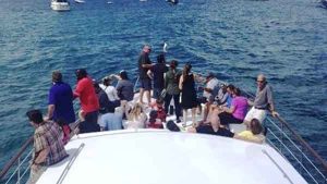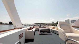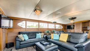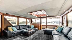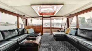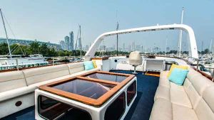 The Sophisticated Lady, a 72’ Chris Craft moored out of Burnham Harbor, is a commercial USCG Inspected yacht that accommodates up to 49 passengers. Perfect for corporate events and large reception boat parties, this yacht includes 3 floors, 2 bathrooms, a full service bar, and premium bluetooth audio sound system. Rates start as low as $1500 per hour and include a captain and crew. Please note that our pricing consists of a per person bar package, sales tax, and service charge. Additional catering is available, however, not required